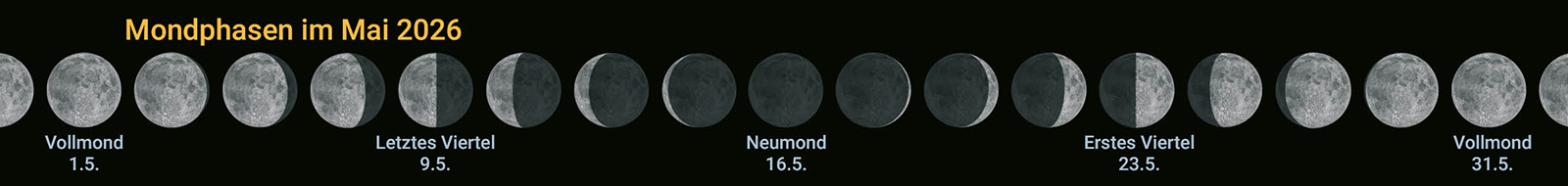 Merkur wird am 14. Mai von der Sonne bedeckt und taucht Ende Mai über dem spätabendlichen Westhorizont auf.