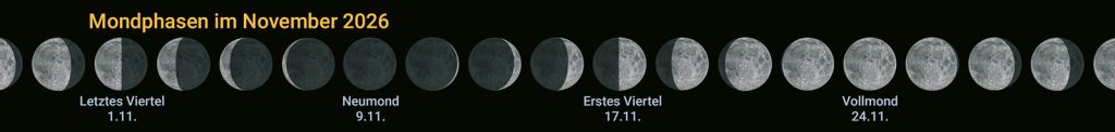 Merkur zeigt sich von Mitte bis Ende November am östlichen Morgenhimmel. Die größte westliche Elongation wird am 13.11. mit einem Winkelabstand von knapp 20 Grad zur Sonne erreicht, die beste Sichtbarkeit tritt in den Tagen um den 21. November ein.