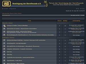 Mit dem neuen VdS-Forum (Adresse forum.sternfreunde.de) baut die Vereinigung der Sternfreunde den Dialog mit und unter aktiven Sternfreunden aus. Die Teilnahme am Forum steht allen Interessenten offen und ist nicht an eine Mitgliedschaft gebunden. Mitlesen ist auch ohne Anmeldung möglich. Unterteilt ist das Forum in verschiedene Unterforen, die sich an den Themen der VdS-Fachgruppen orientieren.