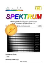 SPEKRTRUM ist das Journal der VdS-Fachgruppe Spektroskopie. Die erste Ausgabe im Jahr 2016 markiert einen markanten Punkt in der Reihe, ist es doch die 50. Ausgabe seit Beginn des Erscheinens in der Fachgruppe.