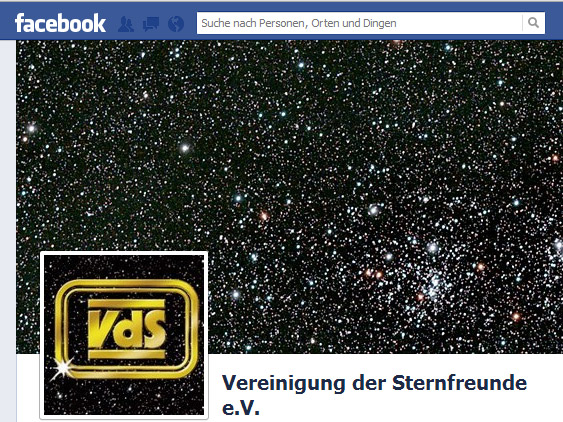Die Vereinigung der Sternfreunde informiert ab sofort auch bei Facebook. Neben der VdS-Website, den Webseiten der Fachgruppen mit ausführlicheren Beiträgen, Themen und Funktionen und dem thmenbezogenen Twitter-Angebot @astronomietag wird es künftig auch bei Facebook laufend aktuelle Informationen und Kurznachrichten geben. Bei Facebook sollen nicht zuletzt auch Interessenten an astronomischen Themen erreicht werden, die nicht oder nur selten auf den einschlägigen Seiten oder Foren zu finden sind. Das Facebook-Angebot der VdS ist öffentlich und auch ohne ein Facebook-Konto einzusehen.
