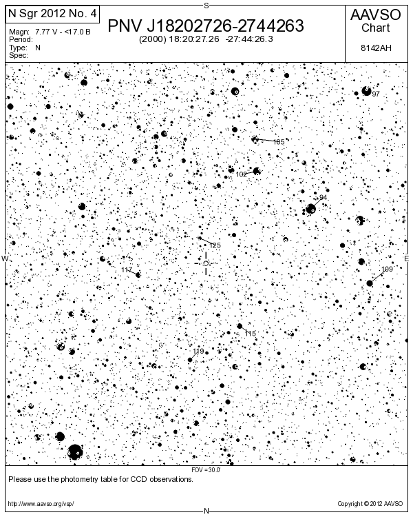 Vier Beobachter entdeckten unabhängig voneinander eine helle Nova mit 8 mag im Schützen.