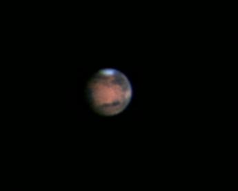 Auch auf dem Mars sorgen wechselnde Temperaturen für sichtbare Effekte. Michael Kunze hat im Abstand von einem Monat zweimal den Planeten Mars aufnehmen können. Beide Aufnahmen hat er in einem Zeitraffer-Video zusammengestellt und überblendet. Neben dem Wechsel der Phase von 93% auf 99% springt vor allem auch die Veränderung der weißen Polkappen innerhalb dieser kurzen Zeit ins Auge.